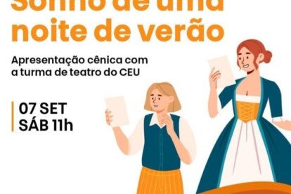 Publicado em 06/9/2024 às 11h 16 Por Redação Neste sábado, 7 de setembro, às 11h, no palco do teatro da unidade será apresentada a peça “Sonho de uma Noite de...
