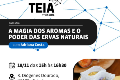 Publicada em 18/11/2025 às 10h 35 Por Redação O Coworking Teia Taipas realiza nesta quarta, 19, das 15h às 16h30, a palestra ‘A Magia dos Aromas e o Poder das...