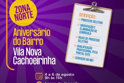 Publicado em 05/08/2022 às 10h por Redação Em comemoração aos 89 anos da Vila Nova Cachoeirinha, o Cate (Centro de Apoio ao Trabalho e Empreendedorismo)...