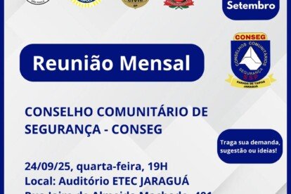 Publicada em 24/9/2025 às 9h17 Por Redação Nesta quarta, 24, o Conselho Comunitário de Segurança- Conseg Parada de Taipas/Jaraguá – realiza reunião...