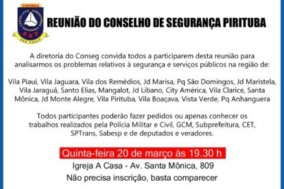 Publicado em 20/3/2025 às 9h50 Por Redação Com o objetivo de tratar da segurança do bairro, e serviços públicos, o Conselho Comunitário de Segurança ( Conseg)...