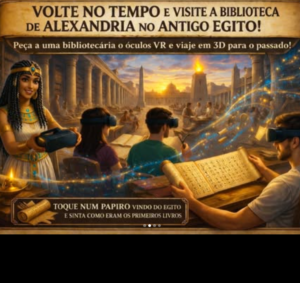 Faltam poucos dias para o público conferir a exposição “Do Papiro ao Pixel” na Biblioteca do CEU Vila Atlântica, no Jaraguá. No local, é possível sentir a textura do papiro que veio do Egito ou viajar pela Biblioteca de Alexandria com óculos de Realidade Virtual.Venha viver essa evolução e antes que o portal para o passado se feche!