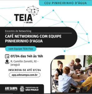 O TEIA Pinheirinho D’Água recebe nesta terça, 7, a empreendedores que desejam se conectar, trocar experiências e fortalecer seus negócios no território.É um convite para ampliar a rede de contatos e conhecer melhor as oportunidades e serviços da rede de coworking.
