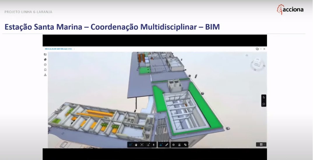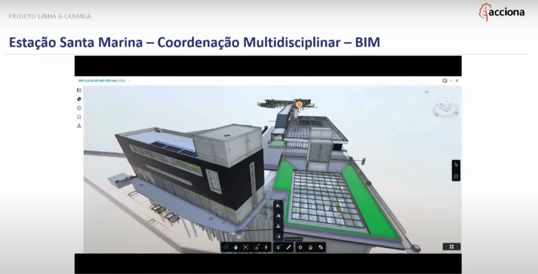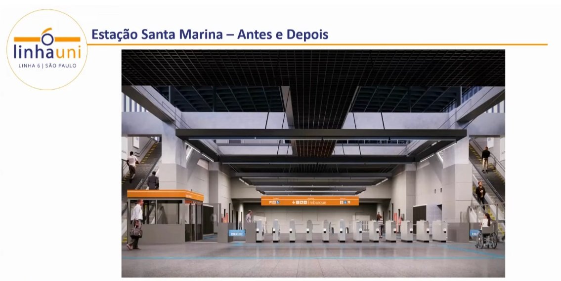 As obras da estação Santa Marina da Linha 6-Laranja estão progredindo rapidamente, com 56,14% de conclusão. A estação foi projetada com o método BIM e recebeu estudos de dimensionamento e simulação de fluxo de passageiros.
