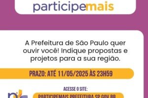Publicada em 09/5/2025 às 10h Por Redação Os moradores de cada bairro da Cidade de São Paulo têm até domingo, dia 11, Às 23h59, para sugerir projetos...