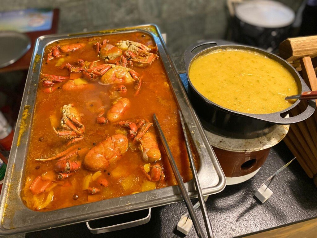 - Buffet de pratos quentes: Paella Marinera, Pirarucu na Brasa, Atum na Brasa, Filé de Pescada à Milanesa, Feijoada de Frutos do Mar, Moqueca de Cação à Baiana, Camarão na Moranga, Penne ao Molho Romanesca com Bacalhau, entre outros.
