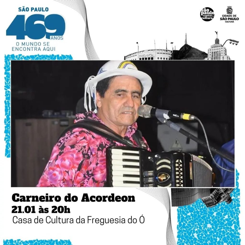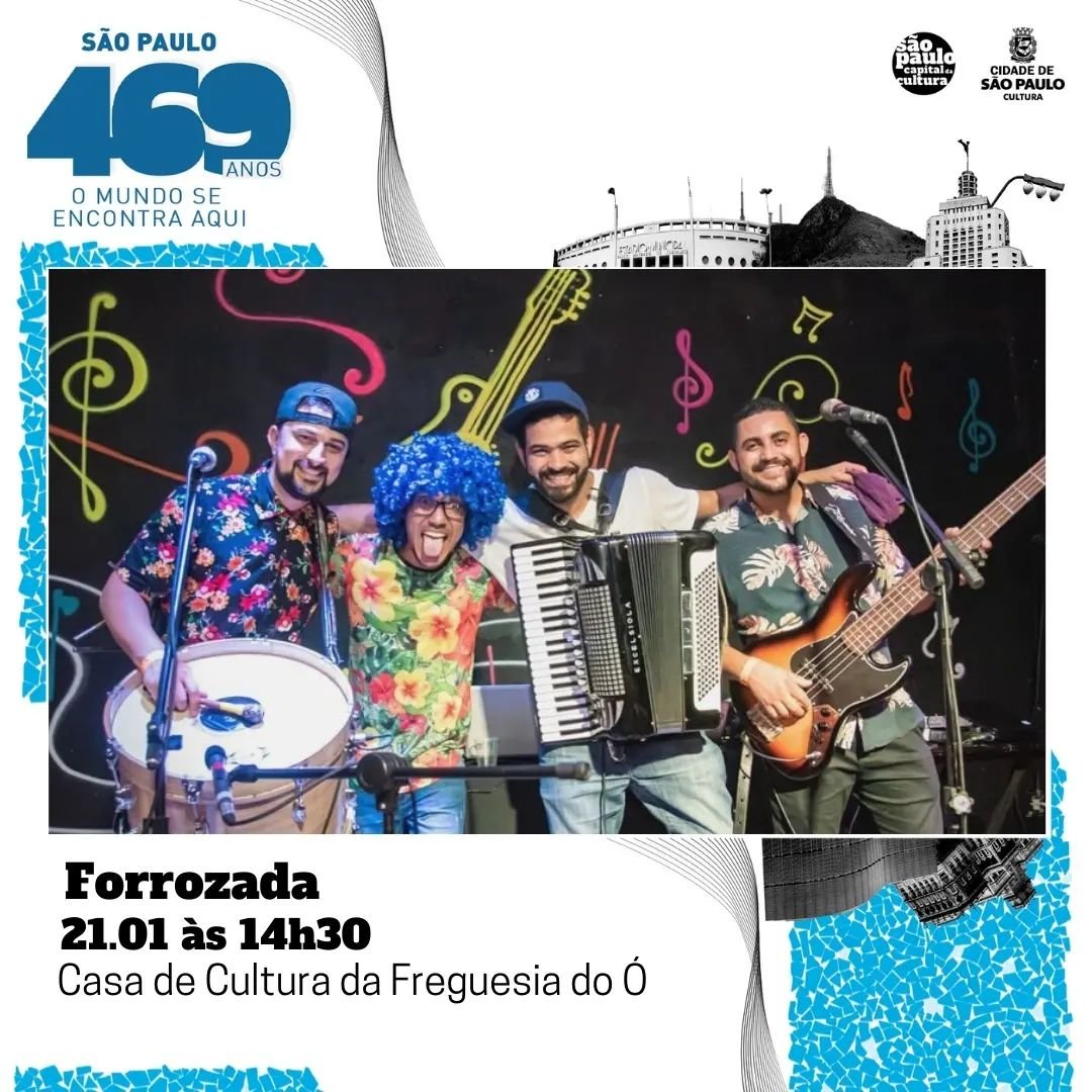 Sabadou na Casa de Cultura Salvador Ligabue com muito forró. Como parte das celebrações do aniversário de São Paulo, que completa 469 anos na próxima quarta-feira, 25 de janeiro, o espaço cultural da Freguesia do Ó será palco neste sábado, 21, de uma programação especial com a presença dos artistas @aloiziocruz, @nandaguedesoficial, @pexeoficial e @carneirodoacordeon, além do grupo @forrozada.pedeserra. As apresentações começam a partir das 14h30 e vão até às 20h. E o melhor: a entrada é gratuita. A seguir, a programação completa deste sábado: