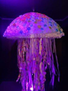 Instalação Água Viva (Sandro Rodrigues) com copos descartáveis de fast foods