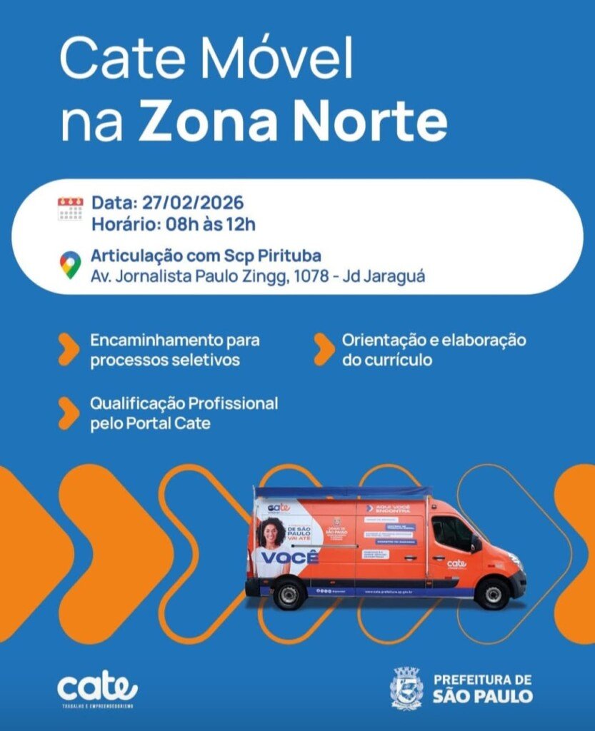 Nesta sexta, 27, o  Cate Móvel está chegando na zona noroeste para aproximar a população da com as oportunidades no mercado de trabalho.