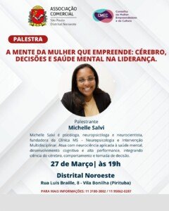 Nesta sexta, 27, a Distrital Noroeste da Associação Comercial de São Paulo convida as mulheres empreendedoras a pensarem no impacto que o empreendedorismo tem no cérebro. Empreender exige decisões constantes, alta responsabilidade e muita capacidade de lidar com pressão. Mas como tudo isso afeta a mente da mulher que lidera?