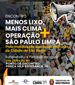 Para celebrar o mês do Dia Mundial da Terra, em 22 de abril, a Prefeitura de São Paulo , em conjunto com o Instituto Limpa Brasil , lança o Movimento SP. A data também marca a formação da primeira turma de líderes comunitários, que estará à frente do grande mutirão no dia 25 de abril. Essa iniciativa promove ações de limpeza, educação ambiental e zeladoria simultâneas nas 32 subprefeituras, com a participação da sociedade, reforçando a importância da parceria entre poder público e comunidade para manter a cidade limpa.