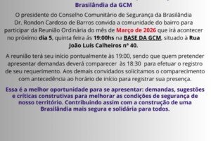 Publicada em 05/03/2026 às 9h32 Por Redação O Conselho Comunitário de Segurança da Brasilândia (Conseg) realiza nesta quinta, 5, às 19h, reunião para que os...