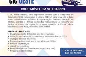 Publicada em 12/9/2025 às 10h Por Redação O Centro de Integração da Cidadania (CIC) Oeste, da Secretaria da Justiça e Cidadania (SJC), realiza durante todo o...