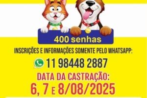 Publicada em 04/8/2025 às 9h19 Por Redação Nos dias 6, 7 e 8 de agosto no estacionamento da Subprefeitura Freguesia/Brasilândia ocorrerá castração gratuita de...