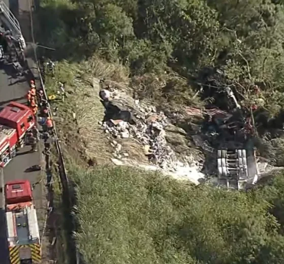 Bandeirantes tem faixas interditadas após caminhão cair em ribanceira em Pirituba