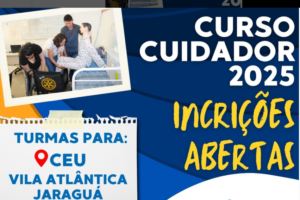 Publicada em 14/7/2025 às 9h25 Por Redação O CEU Vila Atlântica, no Jaraguá, para cuidador é gratuito, tem carga horária de 115 horas, e será oferecido ao...
