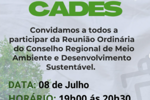Publicada em 7/7/2025 às 10h06 Por Redação Nesta terça, dia 8, das 19h00 às 20h30, ocorrerá a Reunião Ordinária do Conselho Regional de Meio Ambiente e...