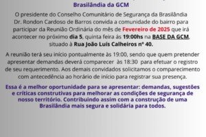 Publicada em 05/02/2026 às 9h27 Por Redação O Conselho Comunitário de Segurança da Brasilândia da Brasilândia (Conseg) realiza nesta quinta, 5, às 19h...