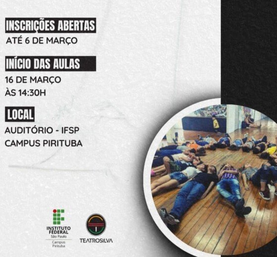 Abertas inscrições para o curso livre de teatro no IFSP Pirituba