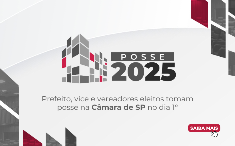 Dia 1º de janeiro, a partir das 15h, a Câmara Municipal de São Paulo promove a Sessão Solene para a posse do prefeito reeleito, Ricardo Nunes (MDB), do vice-prefeito, Ricardo Mello Araújo (PL), e dos 55 vereadores eleitos para a 19ª legislatura (2025-2028). A cerimônia será realizada no Plenário 1º de Maio, no Palácio Anchieta, sede do Legislativo paulistano.