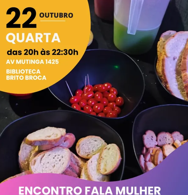 O projeto Arte de Subúrbio apresenta nesta quarta, 22, programação feita com afeto, que visa fortalecer a cultura, o encontro e a arte periférica. Na Biblioteca Brito Broca hoje, das 20h às 22h30, acontecerá uma roda de conversa sobre ser mulher na periferia. Comida, afeto e acolhimento em uma noite que fortalece o corpo, a fala e o território, o que o público pode esperar, na Av. Mutinga, 1425.Gratuito.