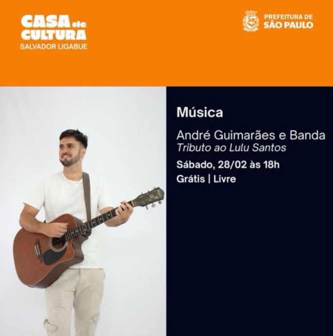 A Casa de Cultura Salvador Ligabue apresenta neste sábado, 28, o Bloco Toda Forma de Amor, evento musical onde André Guimarães e Banda trazem elementos carnavalescos para os principais hits do músico e compositor carioca Lulu Santos. Um show repleto de emoção, energia e vibração. O show acontece às 18h, entrada livre. Largo da Matriz, 215, na Freguesia do Ó.