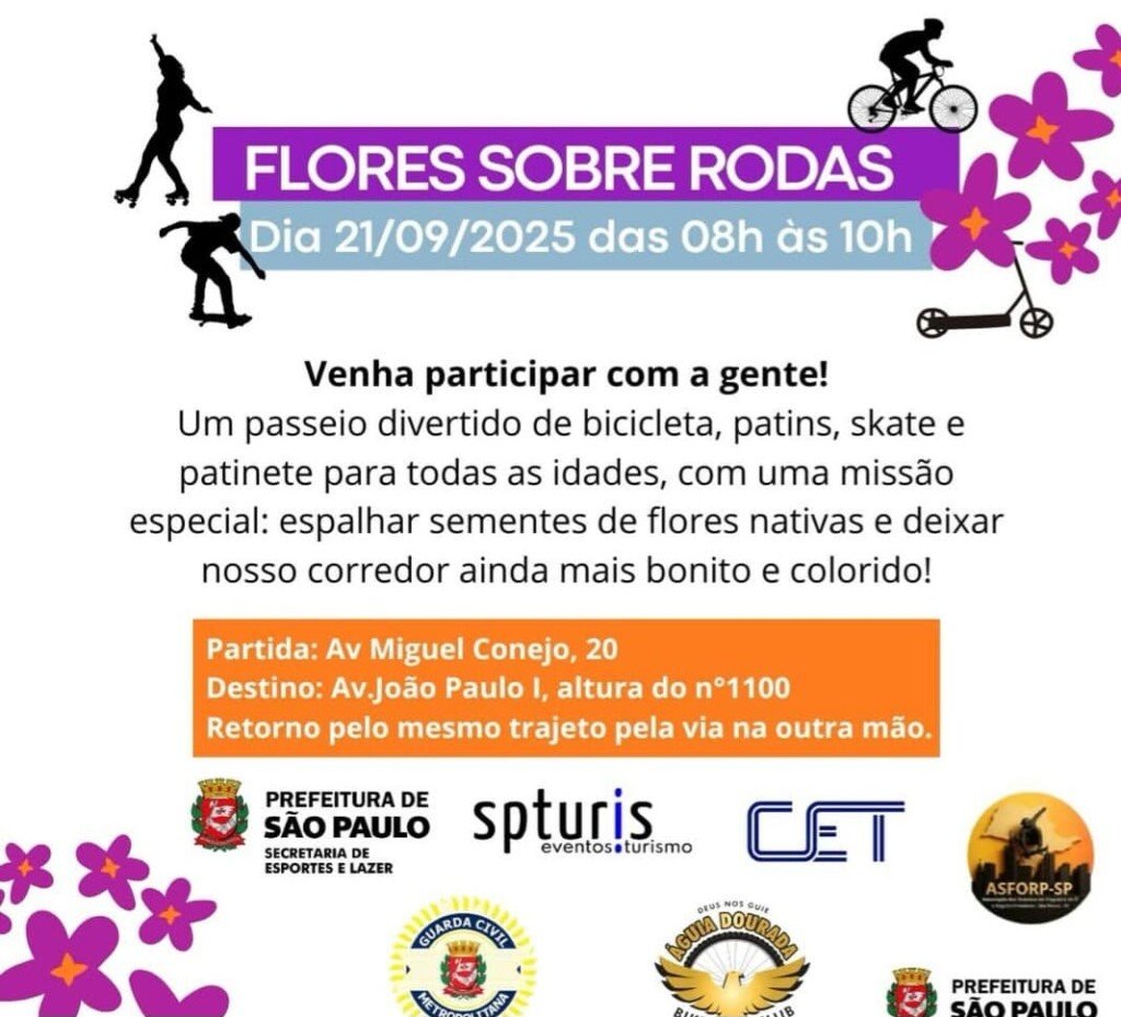Dentro da Virada Esportiva, a Subprefeitura da Freguesia promove passeio para todas as idades que une esporte, lazer e meio ambiente . A ideia é também espalhar sementes de flores nativas e deixar a cidade mais colorida e cheia de vida, anunciando a Primavera.