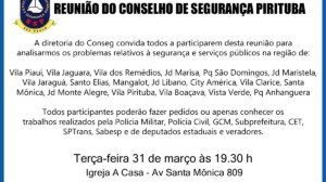 - Reunião do Conseg Pirituba com a população ocorre nesta terça, 31 30 de março de 2026