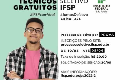 Publicado em 10/05/2022 às 9h por Redação O Instituto Federal de Educação, Ciência e Tecnologia (IFSP) – Câmpus Pirituba está com 40 vagas para o curso técnico...